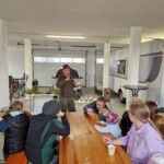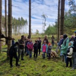 Entlang des Waldweges waren verschiedene Stationen aufgebaut, an denen er die Tiere des Waldes vorstellte, die Hege- und Pflegearbeit der Jägerschaft erläuterte und Pflanzen vorstellte. Als krönenden Abschluss durften alle Kinder einmal durch sein großes Fernglas vom Waldrand aus übers Feld bis nach Alberzell schauen.